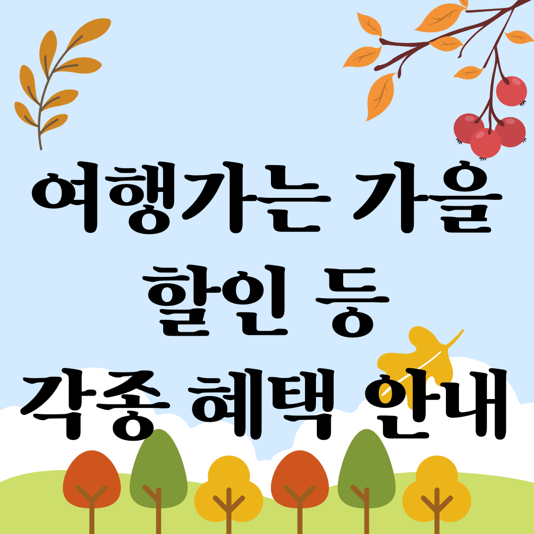 모든 할인 혜택과 여행 프로그램은 신청 방법, 사용 기간, 조건이 다르므로 반드시 사전에 확인하시기 바랍니다. 이번 가을, 정부가 준비한 특별한 혜택과 함께 더욱 풍성하고 의미 있는 여행을 즐겨보세요.